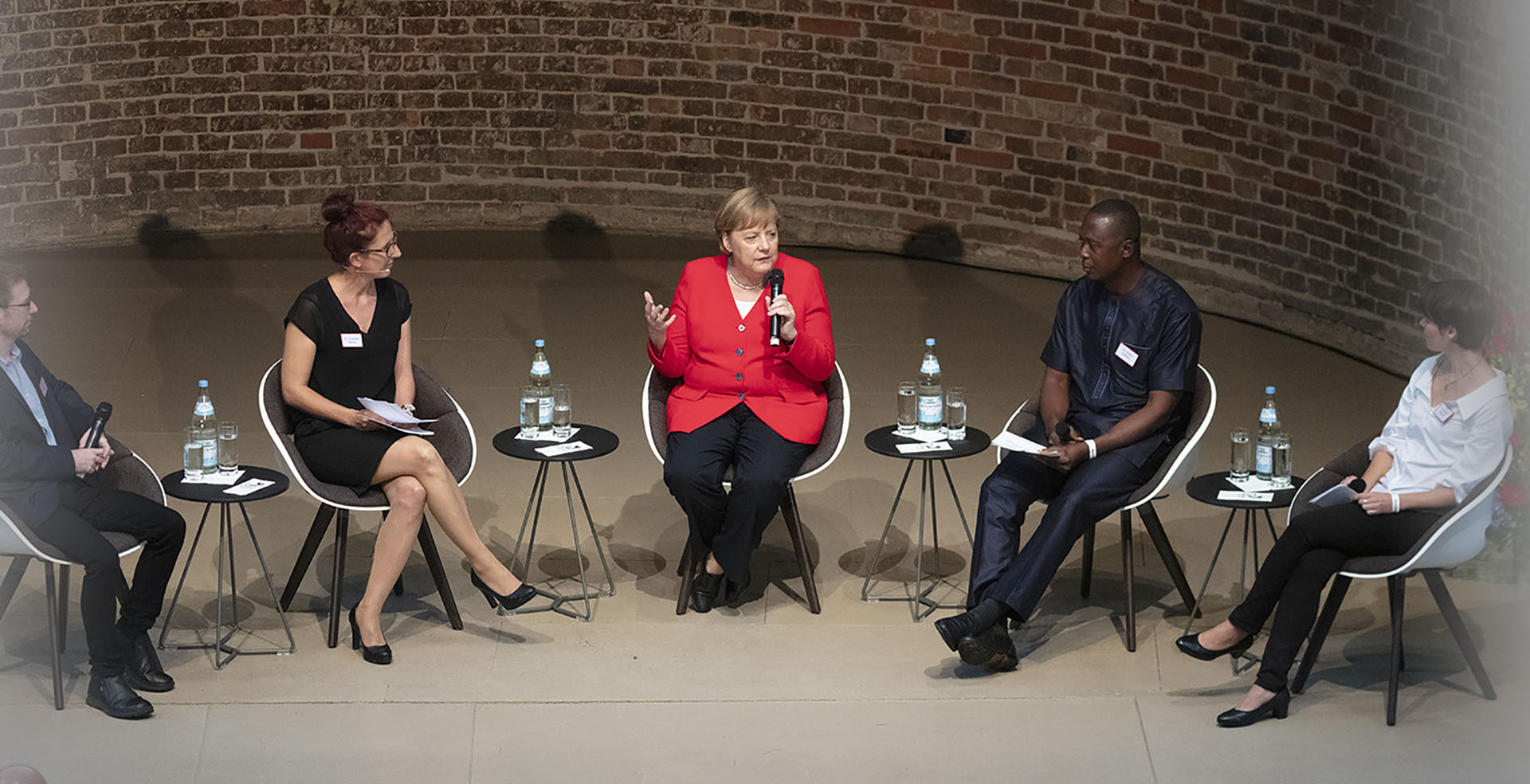 Moderation der Veranstaltung Danktag für zurückgekehrte Fachkräfte im Entwicklungsdienst 2019 mit Moderation Podiumsgespräch mit Bundeskanzlerin Dr. Angela Merkel 2019 Link